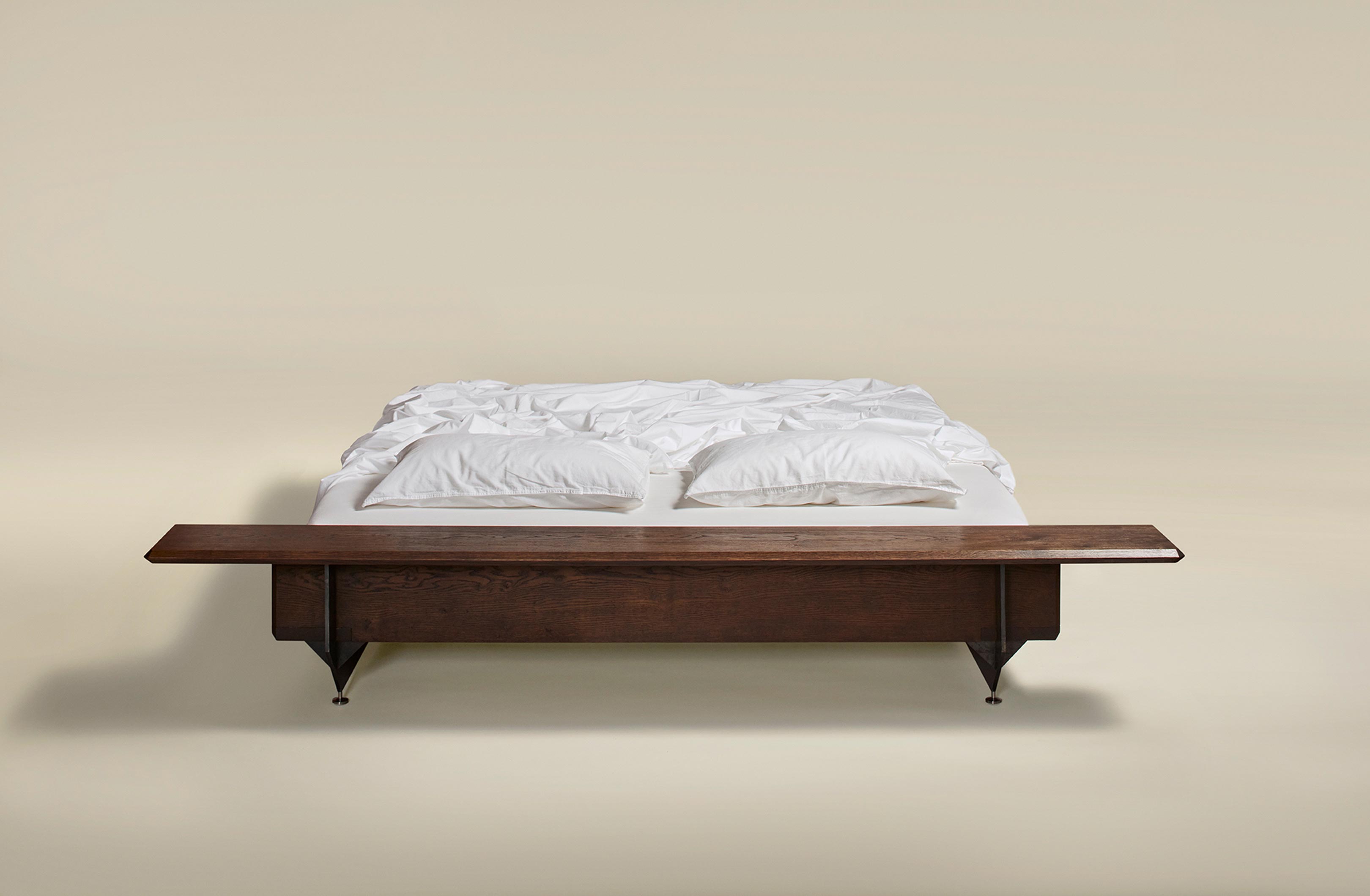The MŪ11 bed combines powder-coated steel, stainless steel, and solid oak. With simple, regular care, these materials will age beautifully.