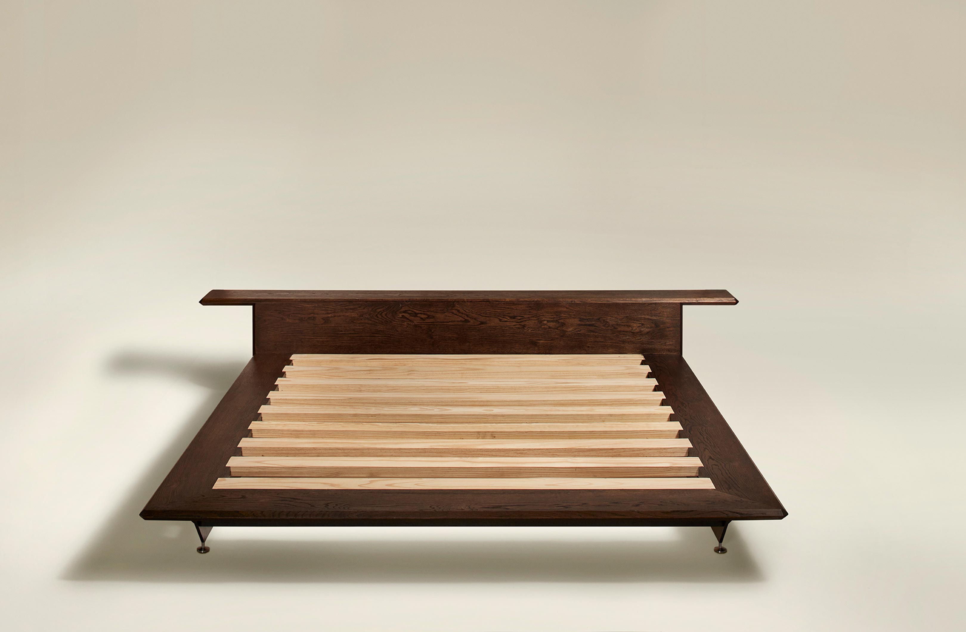 Extending beyond the solid oak frame, the MŪ11 bed’s integrated headboard subtly references torii – traditional Japanese gates placed at the entrance to shrines to symbolise the threshold between material and spiritual realms.