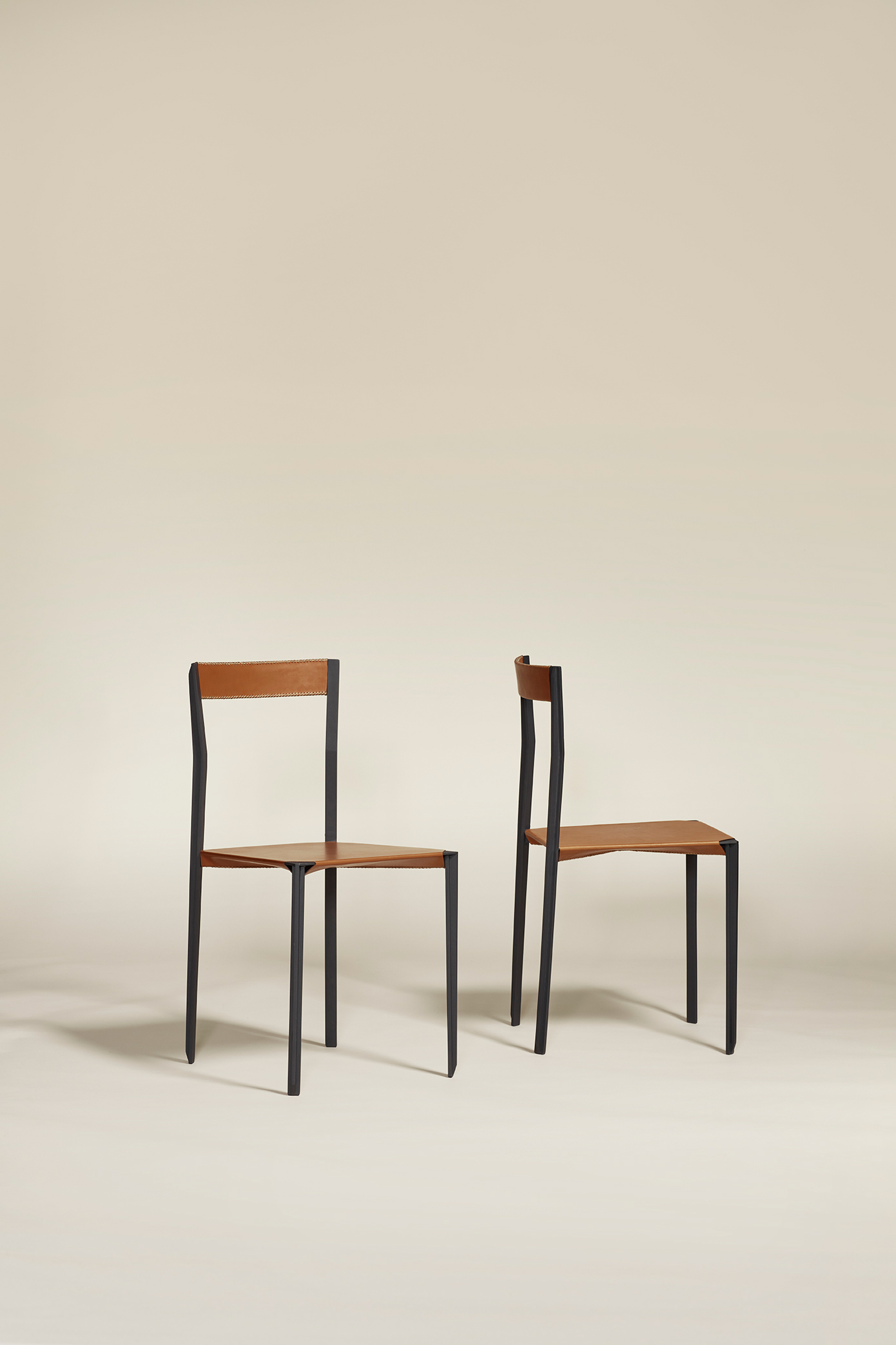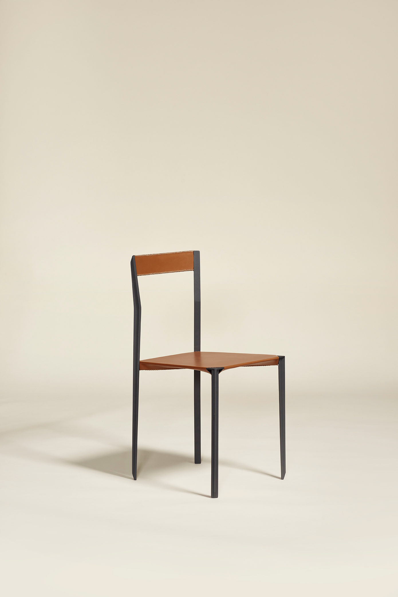 Once assembled, the chair is stability-tested before receiving a durable powder-coated finish. It is then entrusted to a skilled leather artisan, who hand-stitches the leather seat and backrest directly onto the frame.